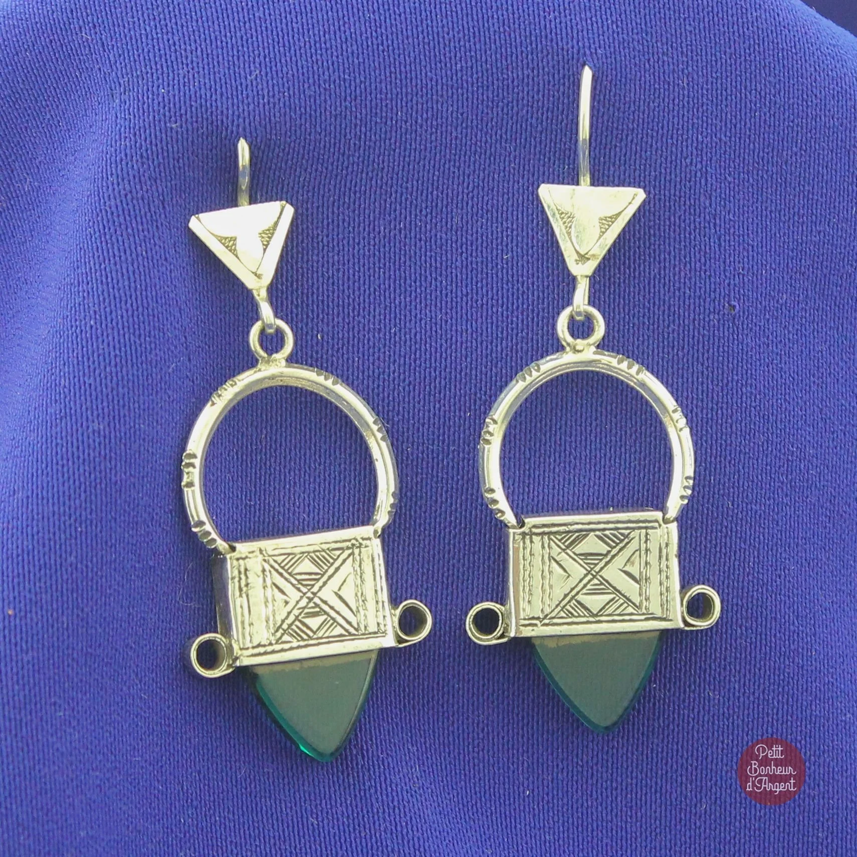 Boucles d'Oreilles Touareg Argent et Perles Vertes (ref NIG200)